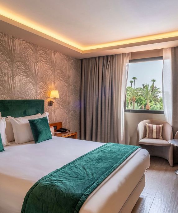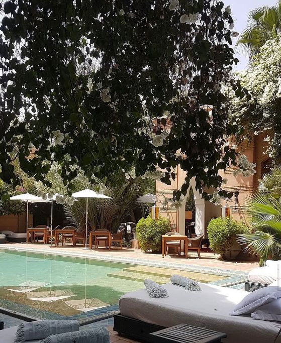 Villa de prestige aux jardins d'oliviers, Dar Rhizlane offre un cadre intimiste et raffiné entre piscine, patios andalous et cuisine gastronomique marocaine.